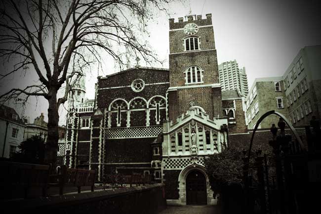 Moments after setting out into the chill of the evening, you will find yourself passing along a creepy alleyway, that runs alongside the crumbling wall of a ruined church, at the end of which you will step through an iron gate to enter a churchyard that has the dubious distinction of being one of London's most haunted burial grounds.