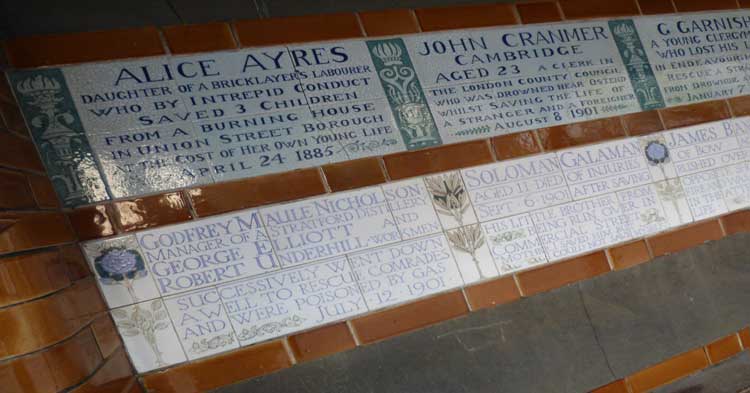 This really is a highlight of the Secret London walk and Richard will not only tell you some of the tragic stories that lie behind these curious tiles, but he will also allow time for you to read them and, if you wish, to photograph them.